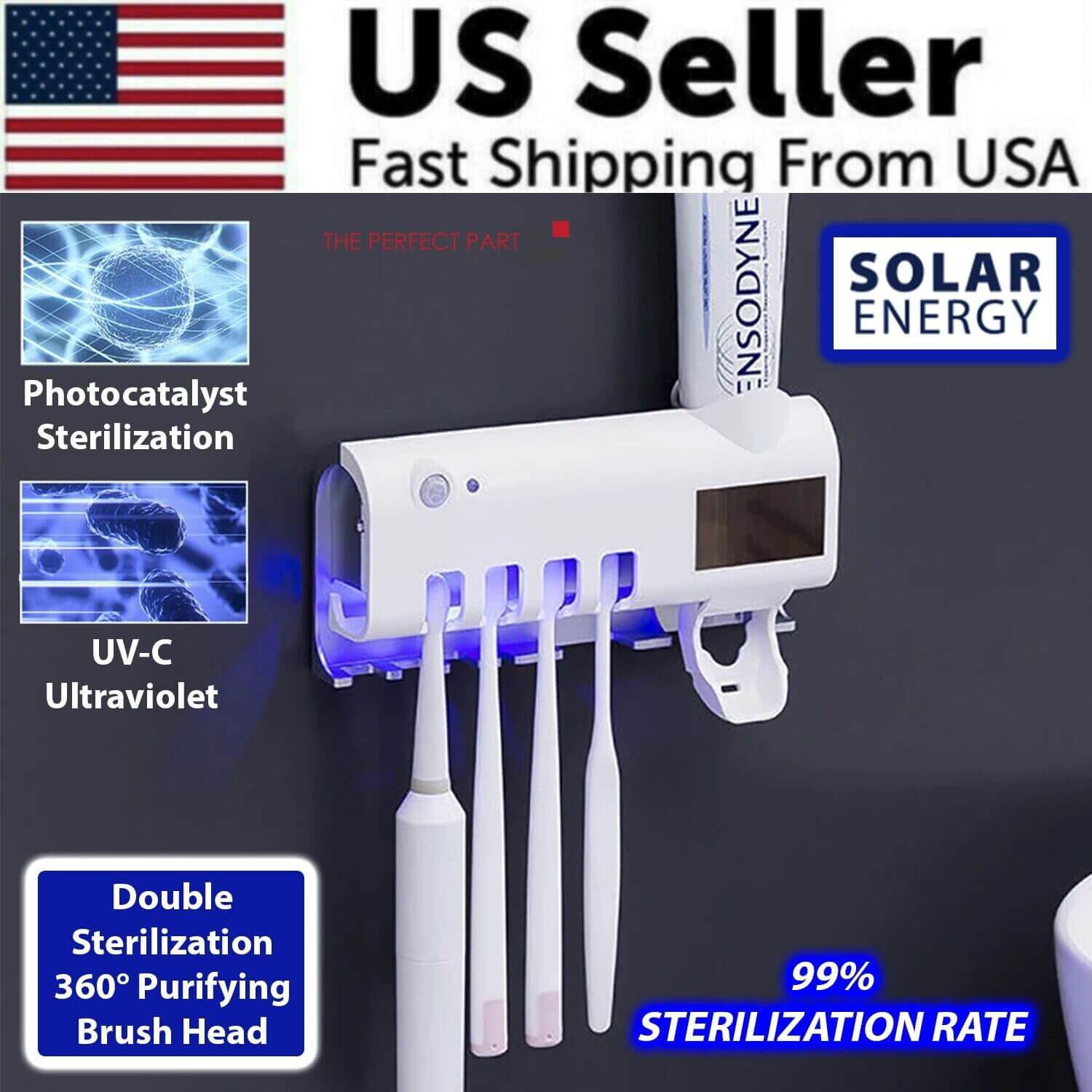 🦷 USB Rechargeable & Built-in Solar Panel - With built-in 1800mAh lithium battery, and solar panel, our UV toothbrush sanitizer holder provides dual charging model.It can be USB charging, and solar panel cycle charging.