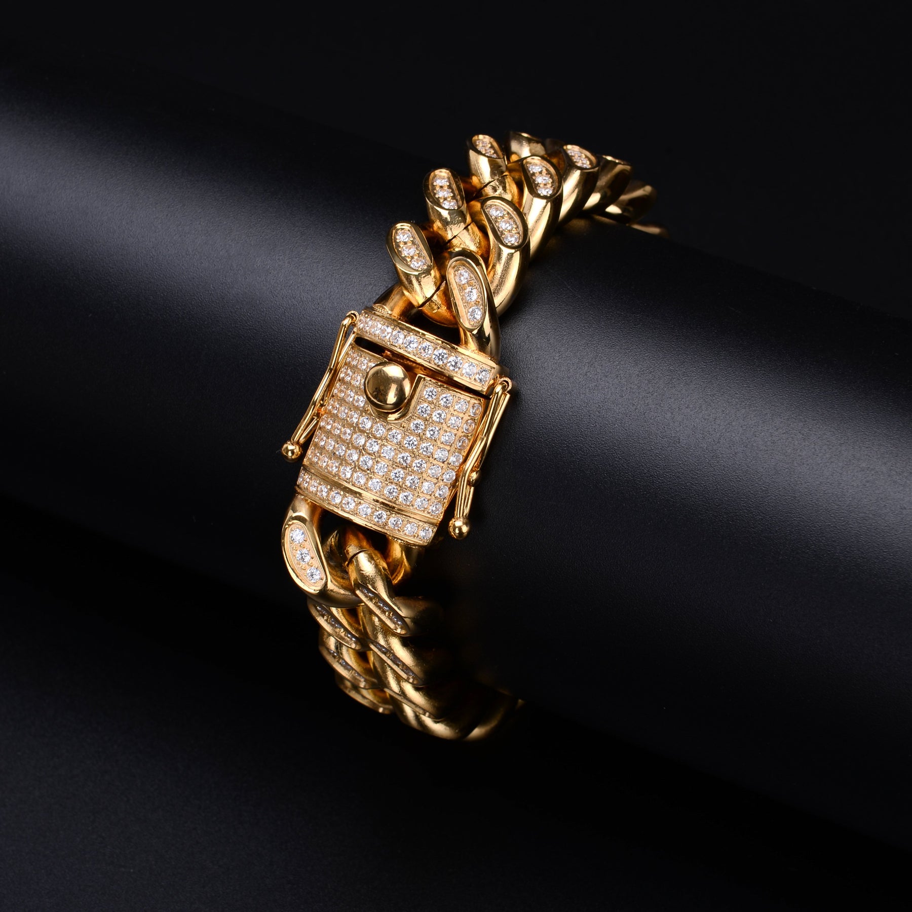 RUGBY gloats high class faultless cubic zircon studded over the entire bracelet through machine precision setting offering GQ styling appeal and a double shot of courage. Wear it with confidence and glory.