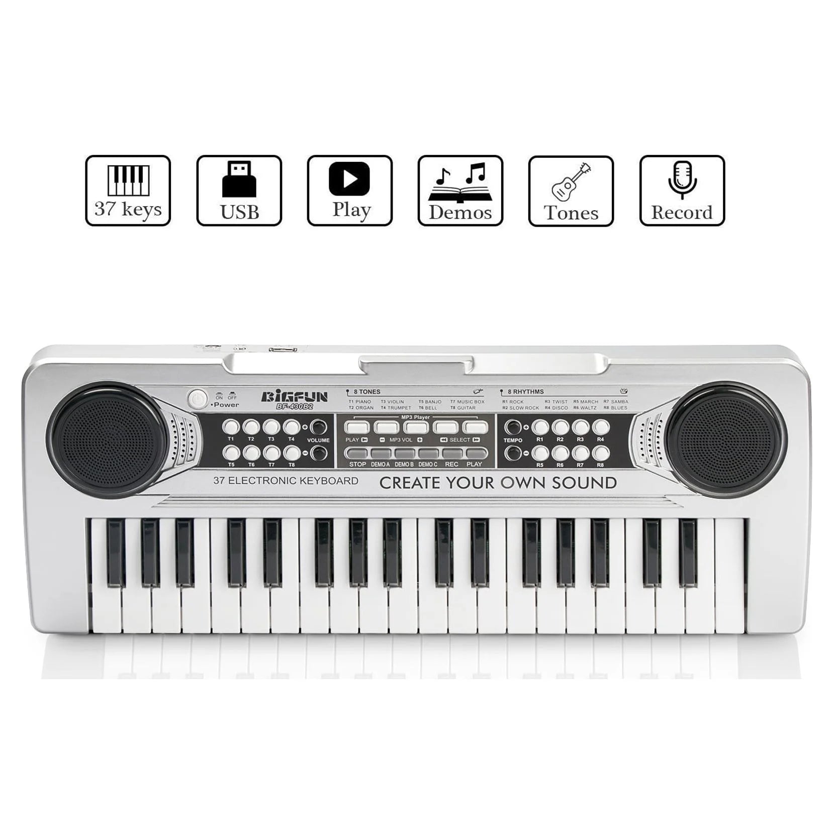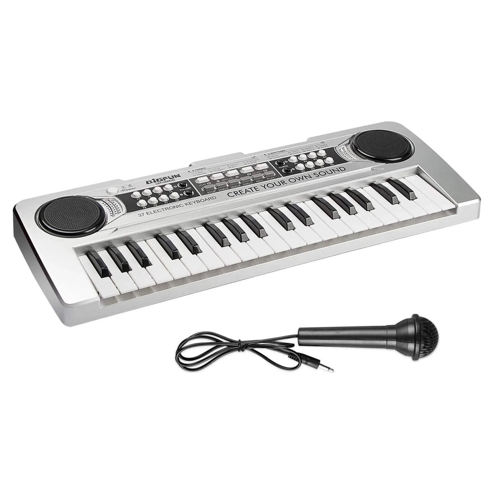 Kids Piano, Kids Keyboard 37 Keys Portable Electronic Musical Instrument Multi-Function Music Piano for Kids Early Learning Educational Toy Birthday Xmas Day Gifts (Silver)