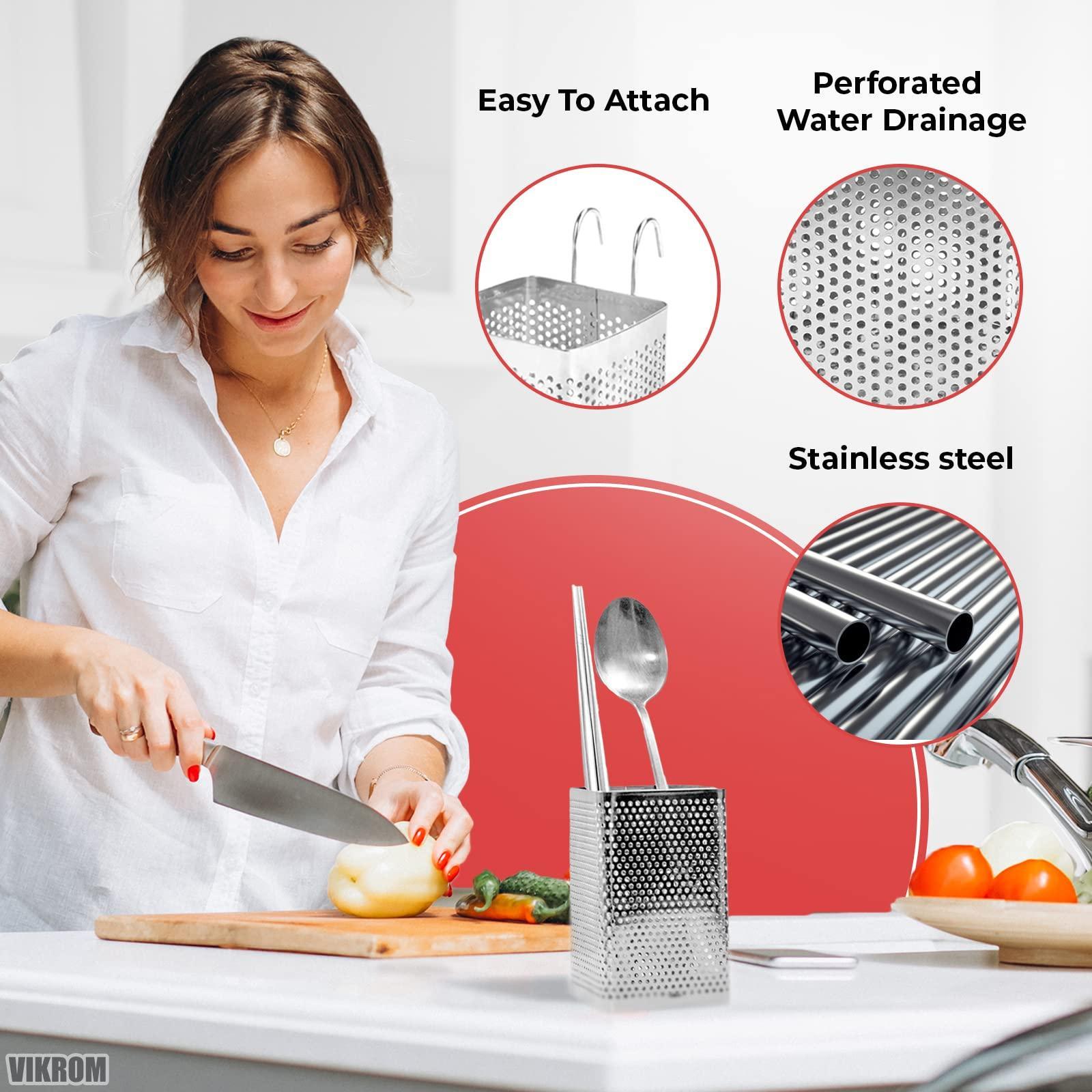 Stainless Steel Utensil Holder for Kitchen Counter Perforated
