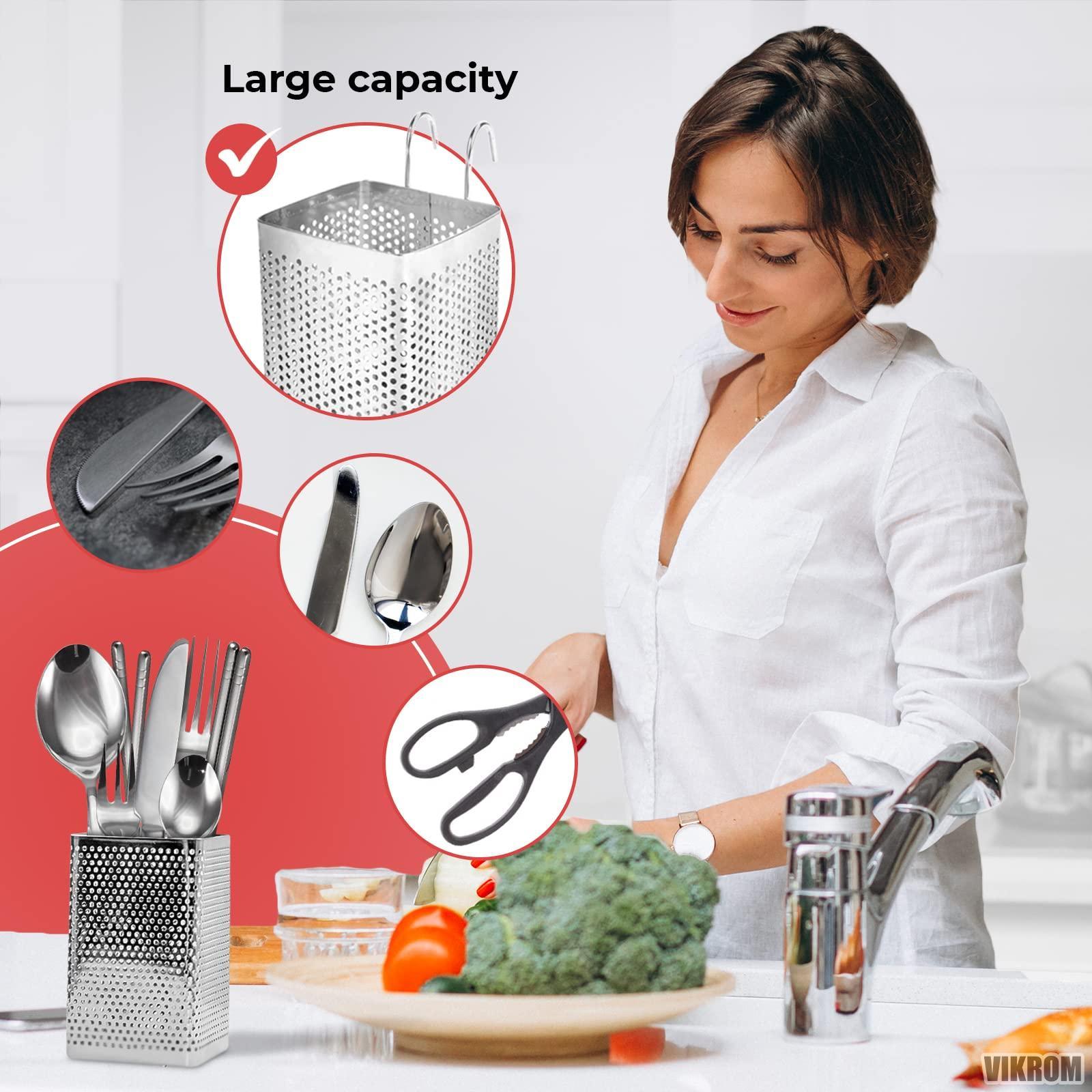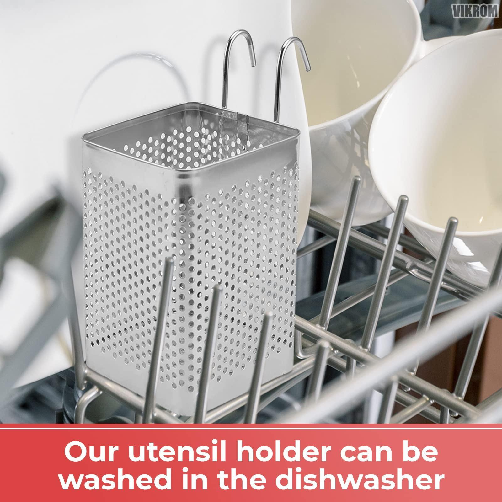 High Quality Large Utensil Holder: The utensil caddy for countertop is made of stainless steel, which is sturdy, rustproof, and dishwasher safe. This kitchen spatula holder is well crafted, lightweight has no rough or sharp edges, this cooling utensil holder is durable for long-term use. Portable Size of Kitchen Tool Holder: The large utensil holder for countertop with a height of 3.9 inches and length of one cube side 2.5 inches is conducive to drying and keeping the kitchen clean and tidy. Our cup utensil holder also save space in the kitchen. Easy To Attach: This perforated large utensil holder for kitchen counter is a hanging tableware dryer that fastens easy to your dish rack with hooks on the backside. The hooks on the back of this silverware holder for kitchen utensils match most dish racks. Perforated Water Drainage: The kitchen utensils holder with perforated holes on the side and bottom to effective water drain. With this hollow and ventilated design of this countertop utensil holder, the spoons chopstick and other cooking utensils caddy can dry faster. Perfect Cutlery Stand: Use this extra large utensil holder to organize small kitchen utensils such as chopsticks, straws, teaspoons, spoons, spatulas, fruit forks, tongs, whisks, and other kitchen utensils. You can use this removable utensil holder in dishwasher to wash small items. These product can also be used as Thanksgiving or Christmas gift for family and friends.