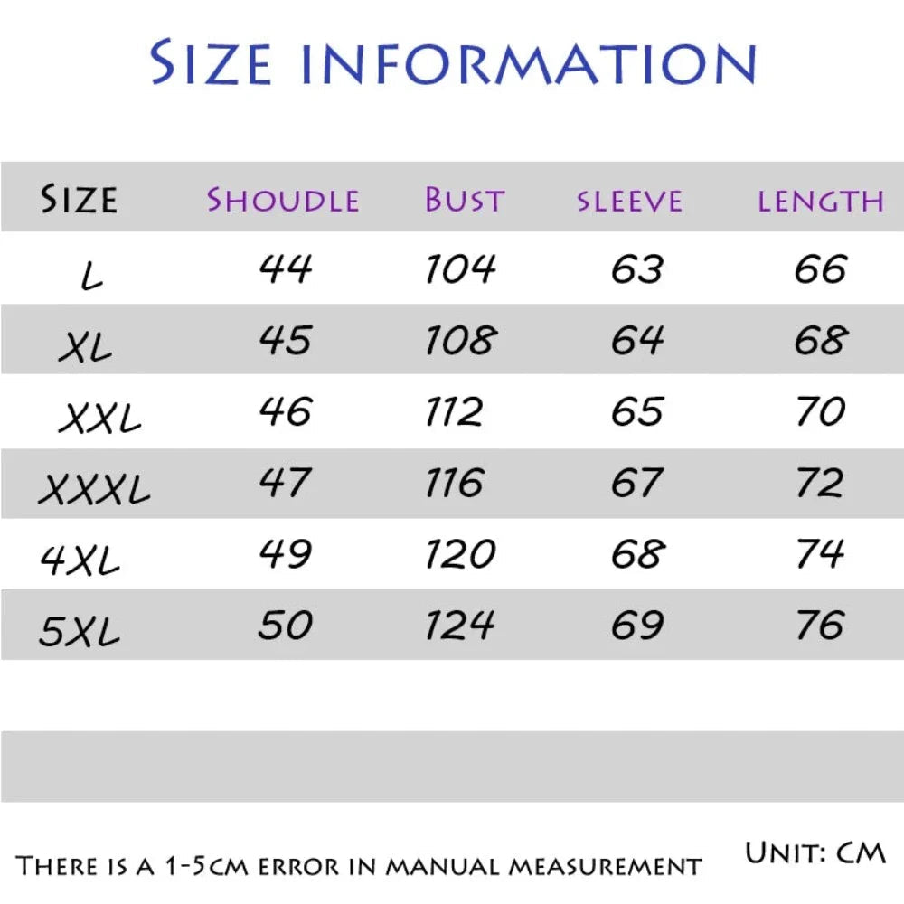 Size: L, XL, 2XL, 3XL, 4XL, 5XL (Asian Size)