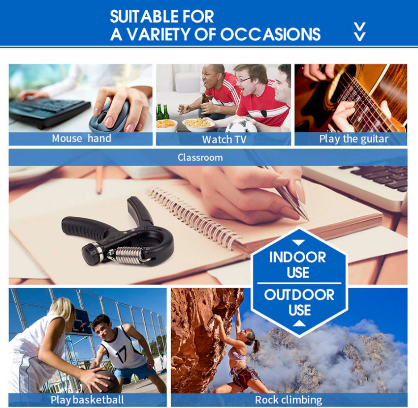 • Grip Strengthener - Designed to increase the strength of the fingers, wrists and forearms, the hand grip strengthener improves overall grip strength and endurance and is perfect for on-the-go stress relief. The durable, spring-loaded hand exerciser is quiet , so you can use it whenever you have time, no matter where you are.