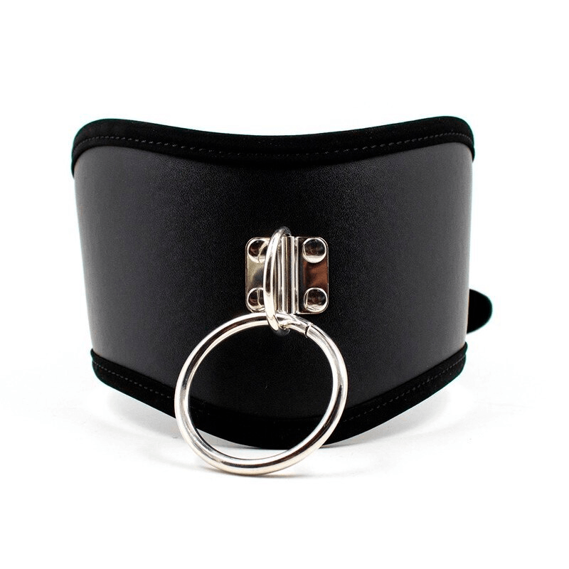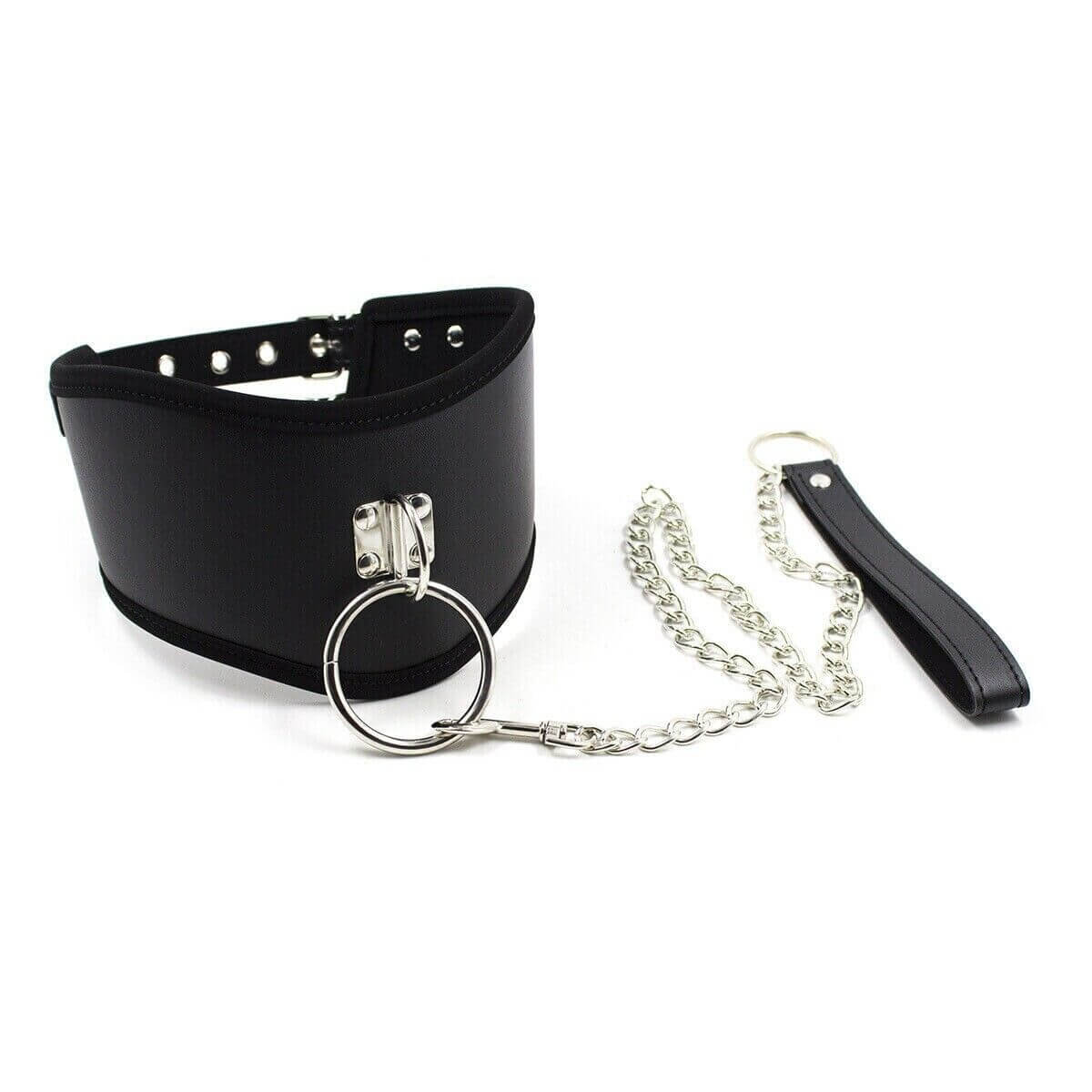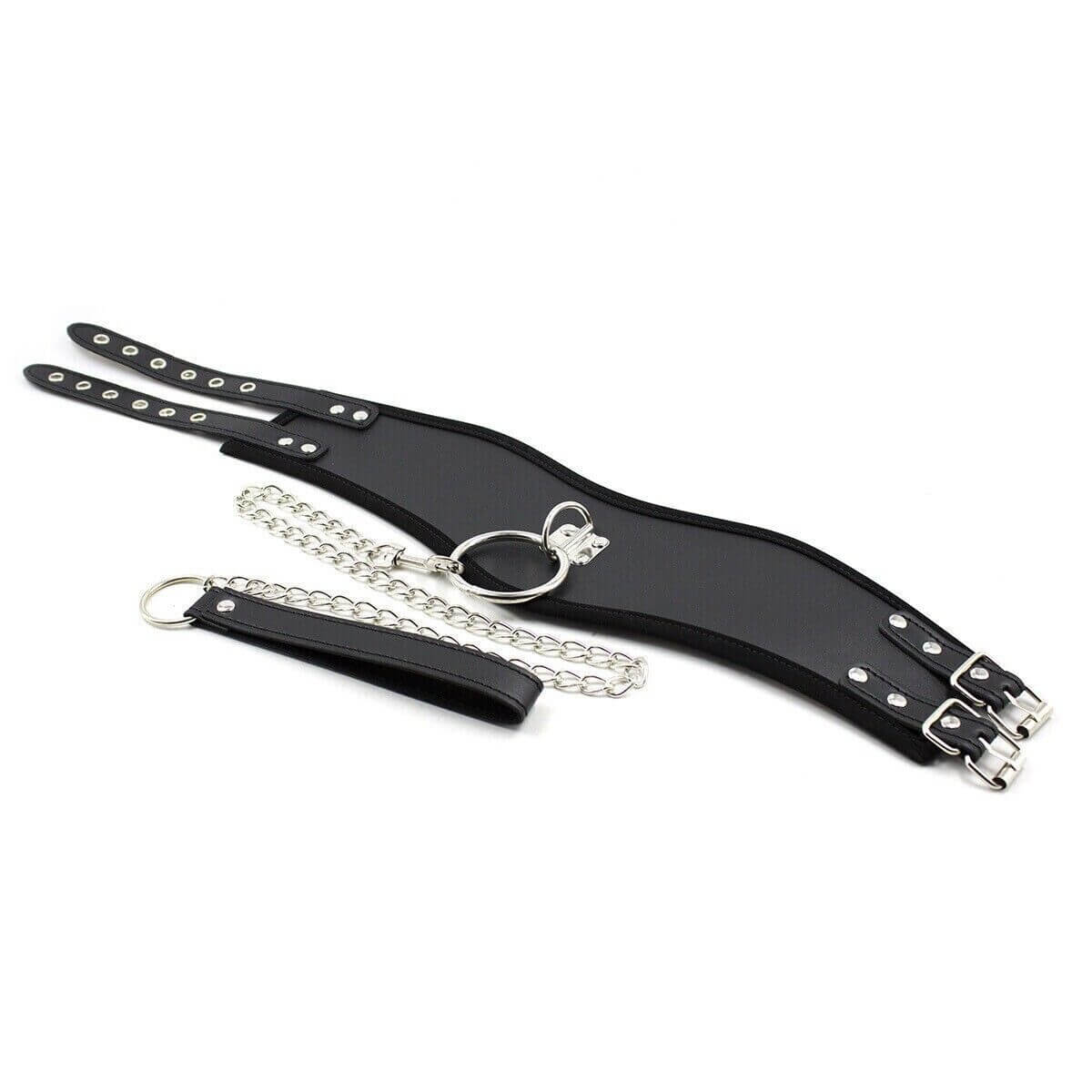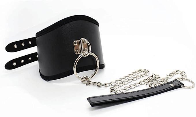 • The BDSM neck collar with leash encompasses a range of features designed to enhance the intensity and intimacy of power dynamics within the realm of BDSM. Crafted with premium materials, such as supple leather or sturdy metal, the collar is built to provide both comfort and durability. Its adjustable design ensures a secure and customized fit, catering to a variety of neck sizes.