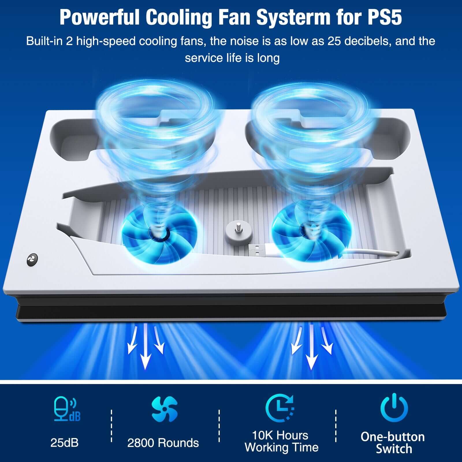 For PS5 Vertical Stand with Suction Cooling Fan Dual Controller Charger Dock Station For Sony Playstation 5 Console