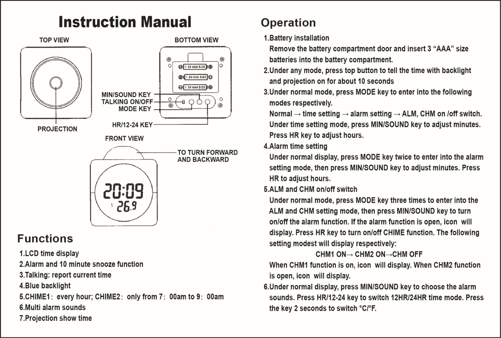 - Dual Chime Function: With a dual chime function, you can select a voice broadcasting mode you like: chime 1 is to broadcast time every hour in a whole day, while chime 2 is to broadcast time from 7 am to 9 pm every hour. You can also turn off the automatic time broadcast manually.